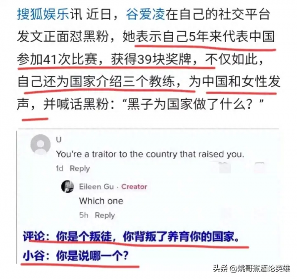 有人质疑谷爱凌,说她是个叛徒,说她背叛了养育她的国家。谷爱凌不愧是谷爱凌,她机智的予以反驳。她说:哪一个?意思是说你指哪一个国家呢?