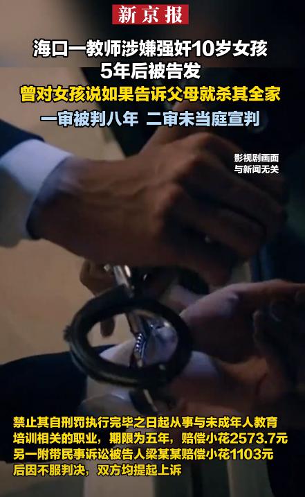 今年4月,王某某被海口市龙华区人民法院判决,王某某犯强奸罪,判处有期徒刑8年,禁止其在刑罚执行完毕5年内从事与未成年人相关职业。