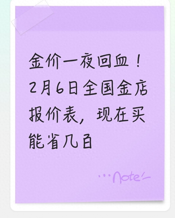 今天就用大白话给大家扒透:金价为啥突然反转、2月6日全国金店和银行的最新价格到底多少、不同需求的人该怎么选,全程无专业术语,全是能直接照做的干货,看完你就知道自己该不该出手。