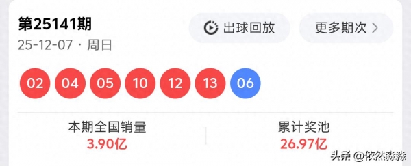 12月7日星期日双色球[25141]期中奖号码已公布