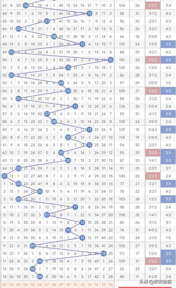 红球3路:断区回补,7期未出冷码31可考虑,温码25、26、28、32至少一码,热码23、24、27、29、30、33考虑1码,尾号考虑24、27、28、32、33之间,其中27、32、33最多一码,对应号码24,排除号码26、30。
