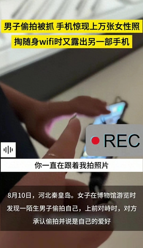 2025年8月10日,河北秦皇岛某博物馆内,一对夫妻发现一名男子尾随偷拍。面对质问,男子竟坦然承认"随便拍着玩",手机相册中竟存有2.4万张女性照片,另一部手机另有2.6万张,总计超5万张,涉及至少5000名女性。更令人震惊的是,该男子声称照片拍摄于多个景区,甚至扬言"拍着玩没什么大不了"。
