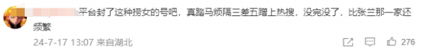 有网友忍不住吐槽:"平台封了这种捞女的号吧,真踏麻烦隔三差五蹭上热搜,没完没了,比张兰那一家还频繁。"