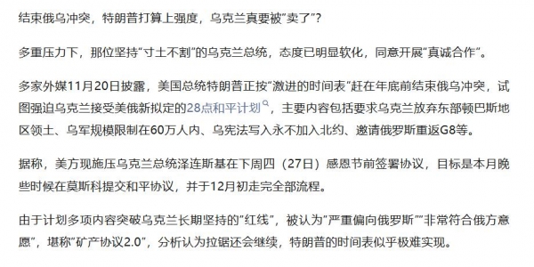 当然了,俄乌冲突这么久,除了美国给援助之外,欧洲也给了很多援助,如果欧洲在这个问题上联合起来坚决表态,那么战争还是可以持续下去的。但是现实是,欧洲主要国家虽然普遍对这个美国提出的协议不满意,但是实际情况却是一句重一点的话都不敢说。在这样的情况下,乌克兰想要继续战争,实在是过于勉为其难了。