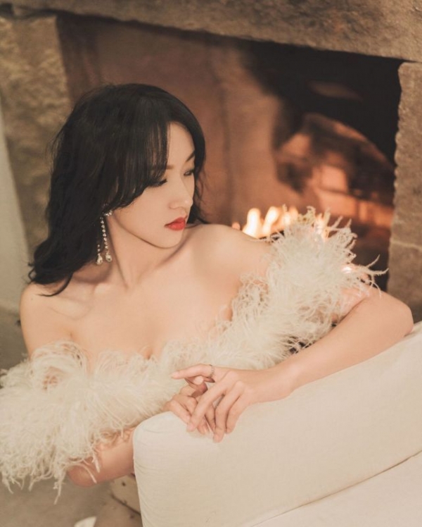不过这样的设计却完美地勾勒出了程潇的小蛮腰,领口部分的"毛毛"很自然的起到了拉宽肩部的作用,而裙摆的设计还略显宽大,所以完美地突出了程潇的纤纤细腰,这样的穿搭造型确实很高级,把女性身上特有的韵味呈现得淋漓尽致。