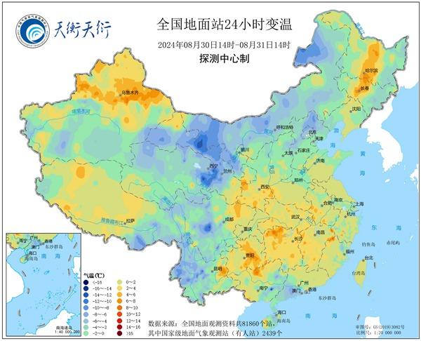 ↑今天下午青海、甘肃和内蒙古西部等地就出现明显降温,像青海东部和甘肃西部部分地区14时气温较昨天14时下降超10℃,气温普遍20℃左右,十分清凉。