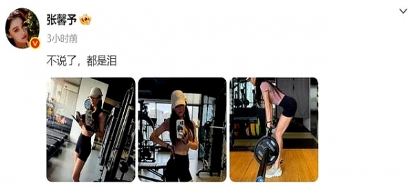还有一张自拍,运动后脸颊泛红,明显刚做完高强度训练,这种状态其实在健身房很常见,但明星能持续保持这种劲头并不多见,娱乐圈经常有人晒健身照,但很多是做做样子,而张馨予的肌肉状态看得出来并非偶尔锻炼,她的四肢纤细但结实,整体身材比例极为匀称,这和她丈夫何捷的职业背景其实也有关系,何捷是特战队员,体能训练和健康生活习惯都非常严格,夫妻间相互影响挺自然的,很多网友说她结婚后"被军嫂生活带着卷",但这种转换反而让她在事业和生活中都更加自律