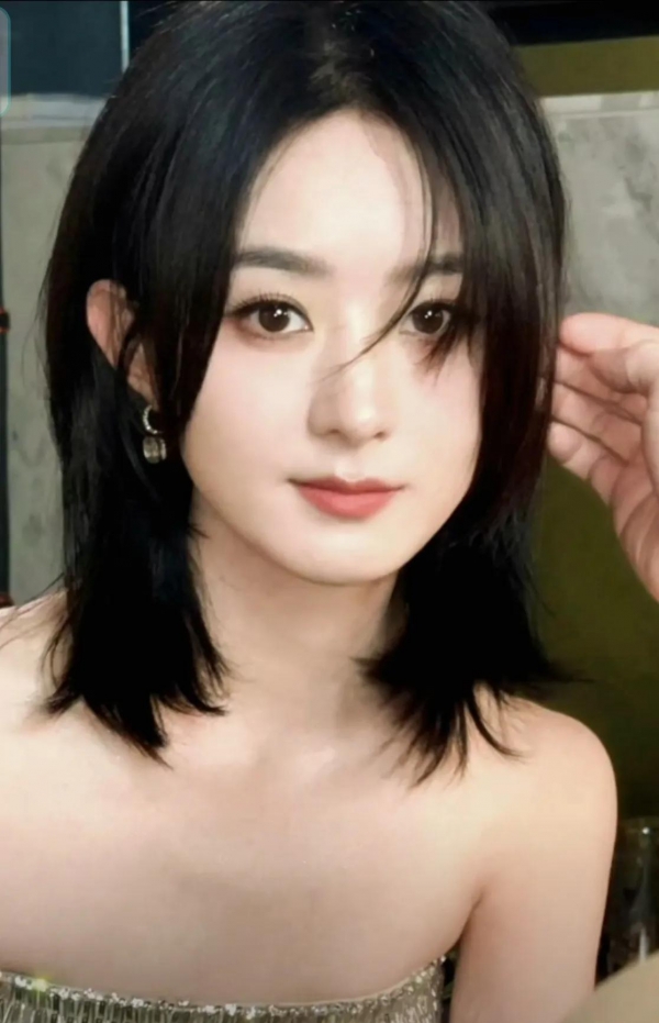 她把头发全部梳到耳后盘起来,额头饱满,整个脸看着好小,五官精致立体,头发也染回来黑色,再搭配一对亮钻耳环坠,整个人看着优雅知性,成熟稳重。