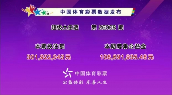 彩韵流芳,公益播爱,大乐透梦初圆。奖池波涌,善念映长天。汇聚涓流成海,助贫弱、暖意绵绵。扶残幼,兴文育教,德泽润山川。本期大乐透的销量为3.01 亿,筹集社会公益金1.08 亿。