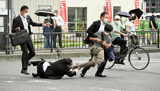 2022年7月,安倍晋三遭枪击身亡,山上彻也当场被捕 共同社