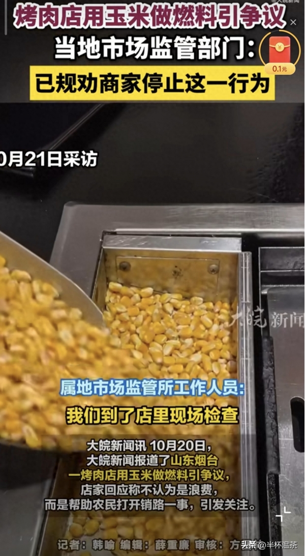 刷到烟台那家烤肉店的新闻,评论区吵得快掀翻了。店主史大哥开了五年烤肉店,一直用玉米当燃料,说是能帮农户处理卖不出的陈苞米,还没油烟。可现在当地找上门规劝,这事儿一下子就炸了锅--有人夸他助农又环保,有人骂他浪费粮食,两边各说各的理。