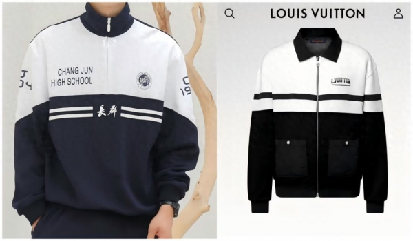 10月23日,有网友在社交平台发帖称,发现 LV 一款售价16000元的男士大衣,与长沙一所中学的校服 "撞衫"。从网友发的对比图可以看到,两者黑白配色比例相似,且均带有束袖口设计,但价格悬殊极大--LV 大衣售价1.6万元,而中学校服仅需86元。该发现引发网友热议,不少人调侃 "高端时尚与校园穿搭的意外重合"。