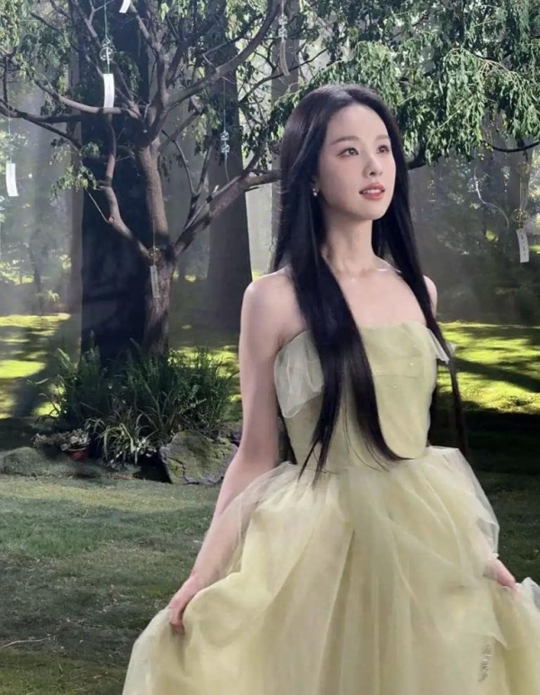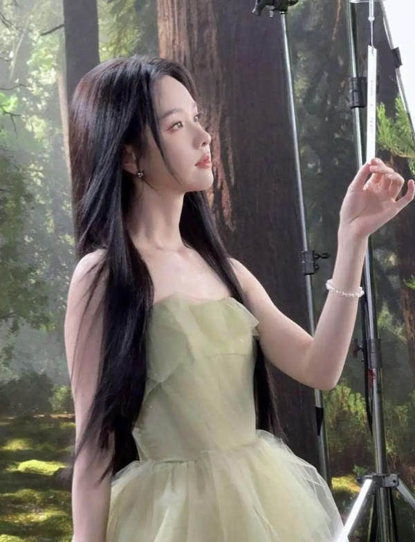 网友辣评:"别人穿绿裙是显白,她穿绿裙是给绿色镀了层仙气!"
