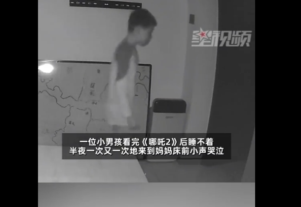 近日,山东烟台,一位小男孩看完《哪吒2》后睡不着,半夜一次又一次地来到妈妈床前小声哭泣。