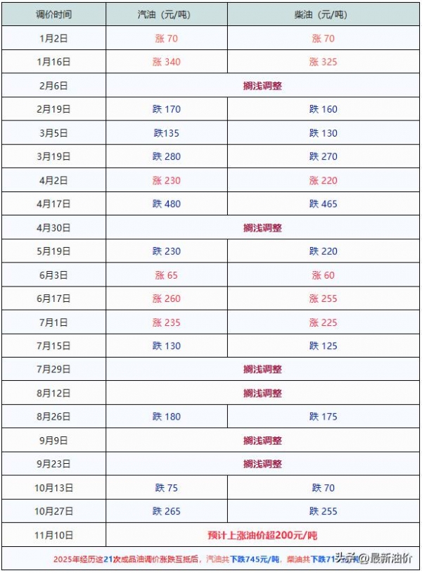 下次油价将在11月10日晚进行调整,大家相互转告,昨天刚刚大跌的油价,今天大涨开局了。好在现在距离下次油价调整还有两周时间,希望油价能够重新变成下跌。大家多注意下接下来国际油价的走势。