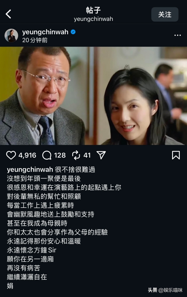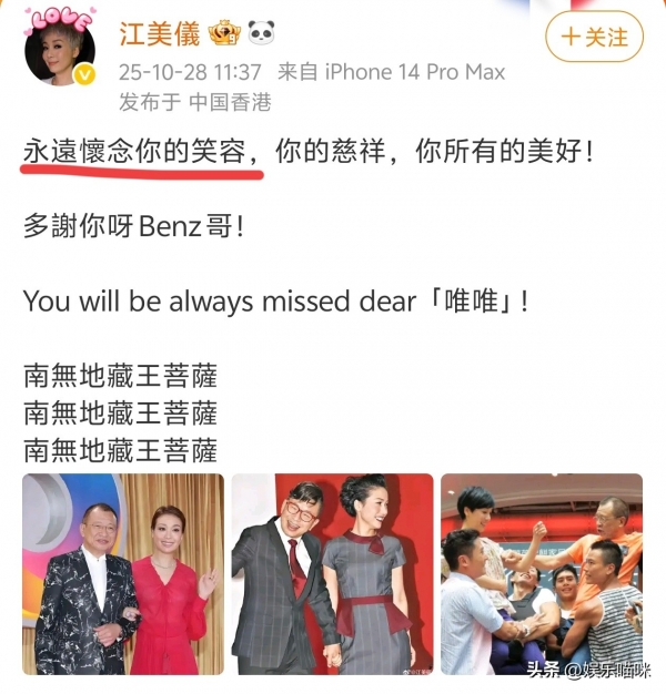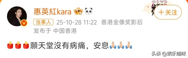 惠英红也发文悼念,很直接:愿天堂没有病痛,安息。