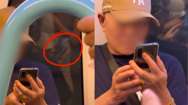 得知自己偷拍别人被抓了个正着,大爷最后还是无奈交出了手机。
