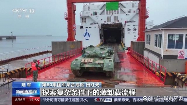 本周二,央视新闻报道了一则解放军第80集团军某旅与渤海玉珠号万吨客滚船组织军地协同装载航渡演练的新闻,在外界引发热议。