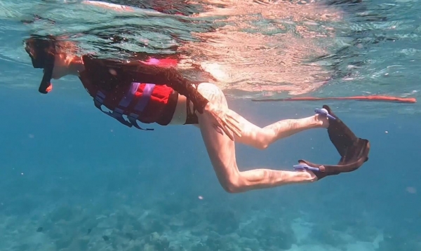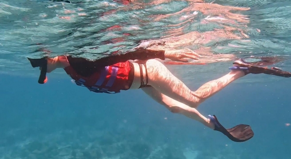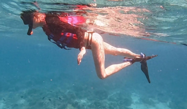 很多人以为浮潜就是戴个面罩往水里一看,其实哪有那么简单。正规流程得学理论、练呼吸、适应水压,还得有专业教练带。普通人想系统学一套下来,费用不低,时间也耗不起。但她不但去了,装备也专业,救生衣、潜水镜、防水相机一个不少,动作看起来还挺熟练。虽然没潜太深,就在水面附近慢慢游,但能看清海底那些五颜六色的鱼和珊瑚,已经够震撼了。