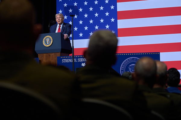 当地时间2025年9月30日,美国总统特朗普在弗吉尼亚州匡蒂科海军陆战队基地向高级军事指挥官发表讲话。 视觉中国