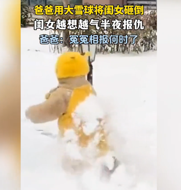 1月21日,江苏,据视频显示,爸爸和闺女在雪地里玩雪,爸爸用大雪球将闺女砸倒,闺女越想越气半夜报仇,竟趁着爸爸睡着了狠狠的给了爸爸一巴掌。