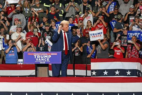 当地时间9月23日,美国前总统特朗普在宾夕法尼亚州出席竞选集会。视觉中国