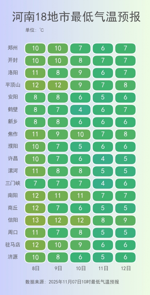 不过最低气温持续低迷,9日起多地仅有5-9℃,昼夜温差普遍在10℃以上,部分地区甚至可达15℃以上,早晚仍要注意添衣保暖!