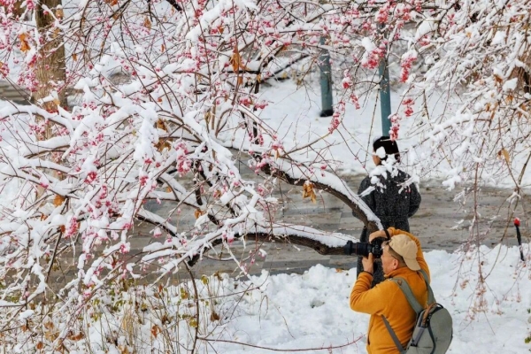 △11月6日,新疆乌鲁木齐,市民拍摄雪景。