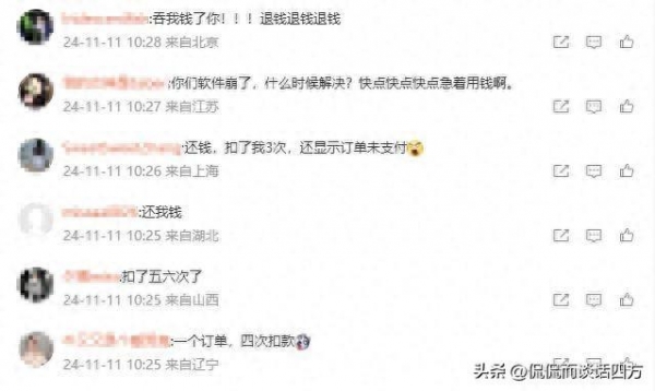 另一位用户则表示:"付了个599,扣卡里的钱了,可商家说我支付未成功。为了这事折腾一早上。"
