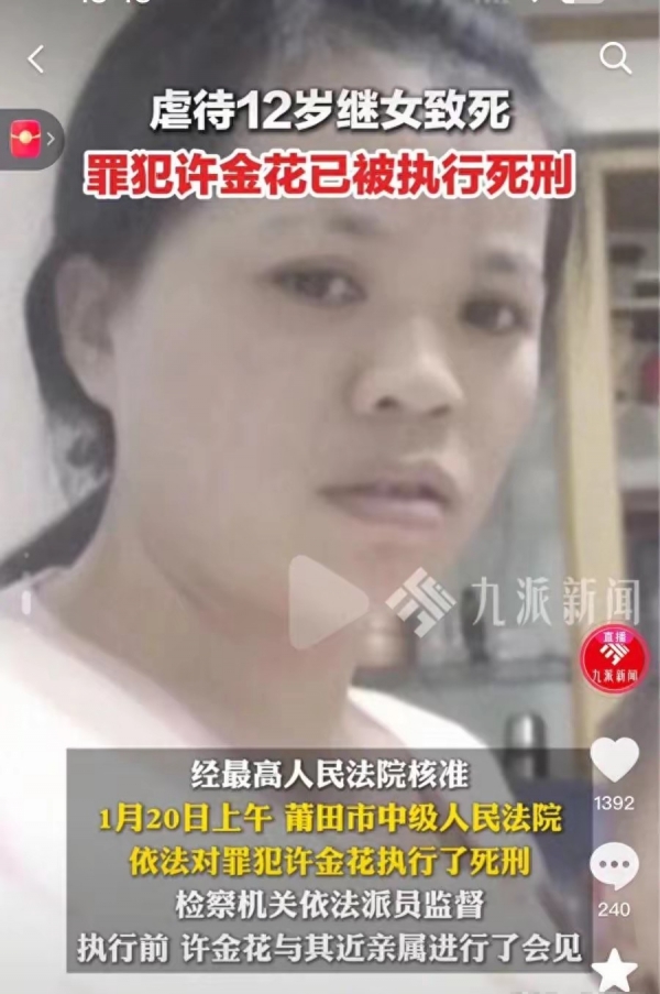 建莆田12岁女孩琪琪遭继母长期虐待致死案引发全网震怒,1月20日终于迎来最终的判决,继母许金花维持原判还是死刑,立即执行,真的大快人心。