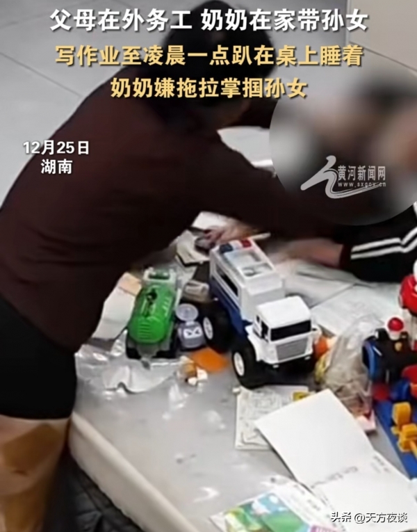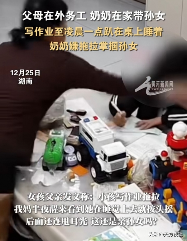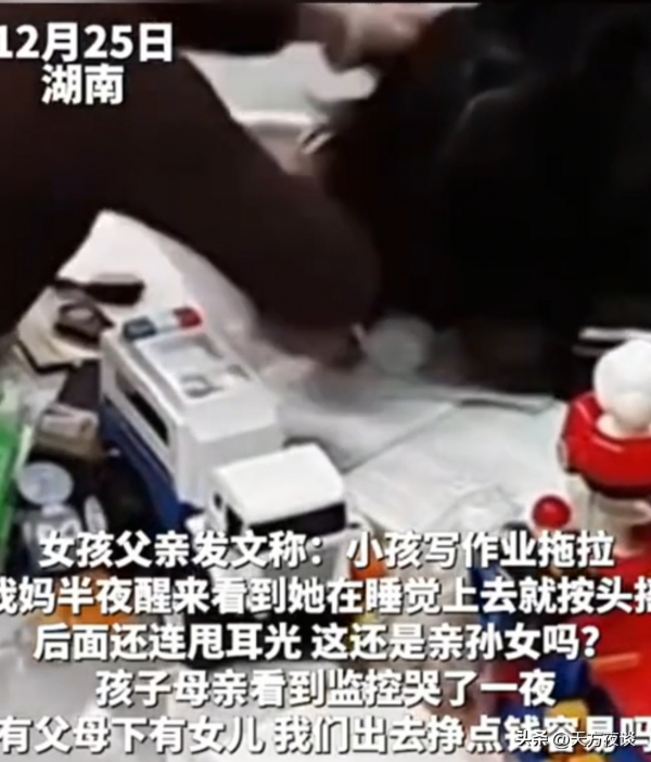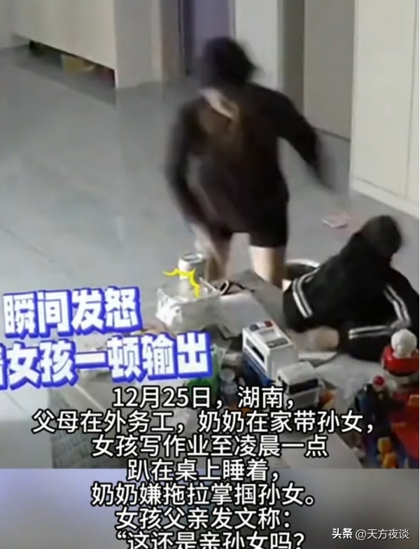 监控里接下来的画面,看得人心里直发紧。奶奶推门出来瞧见这一幕,半分心疼都没有,先是"啪"地关掉台灯,伸手就粗暴摇晃小雅的胳膊。孩子迷迷糊糊睁开眼,揉着酸涩的眼睛想去开灯接着写,就因为抬头斜看了奶奶一眼,直接点燃了老人的火气。