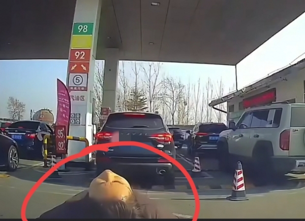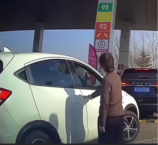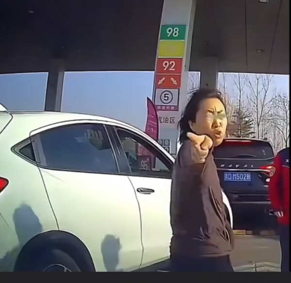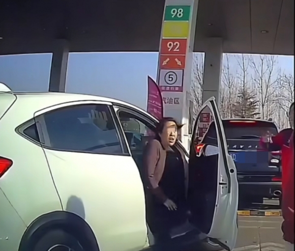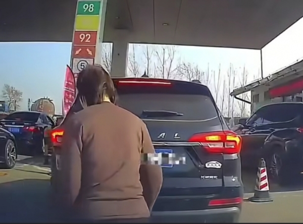 2月24日,一名江苏泰州的男子爆料称自己在江苏一加油站排队加油时,突然一名穿着咖啡色打底衫,留着齐耳短发的中年女子跑到了他的车前,背对着车子站着,用人肉阻挡男子的车前进。