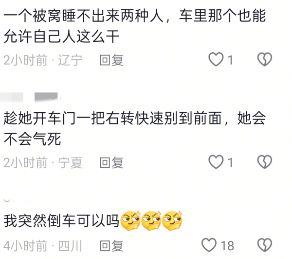 但她这样的人迟早会被收拾的,因为她下次遇到了脾气不好,情绪失控的人,可能就直接撞她了,或者以其人之道还治其人之身了。