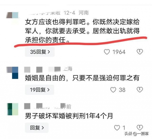 近日,网上报道了一件事情,河北沧州市的一名女子在嫁给一名军人后出轨了其他异性,两人离婚后,女子出轨的对象被判刑1年4个月,不过视频发布后,却有许多网友表示不公平。