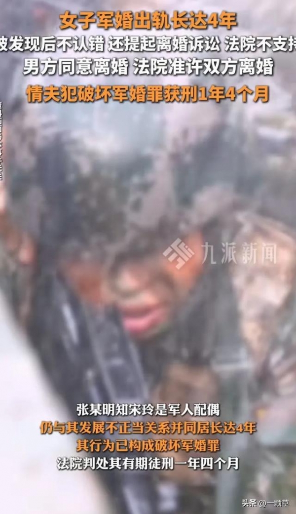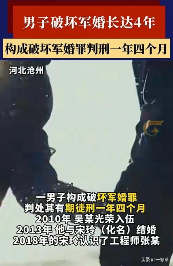 然而,到了2018年,宋玲认识了工程师张某,不知是因为长期异地的原因感情淡了,还是忍受不了长期独守空房的煎熬,慢慢的宋玲对张某产生了情愫,而张某明知道宋玲是军嫂,也还是和宋玲成为了一对地下情人,两人发生关系后并同居长达4年之久。