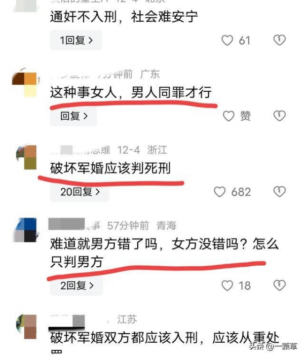 男方有错,女方也有错?所以应该把女方也判刑,而且只判1年4个月,太轻了,这放在古代可是扰乱军心,是要被砍头的。