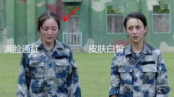 杨幂晒后满脸通红的样子和身边的佟丽娅形成了鲜明的对比。