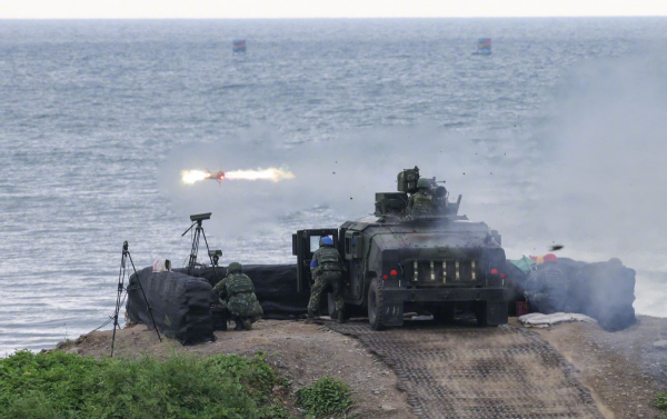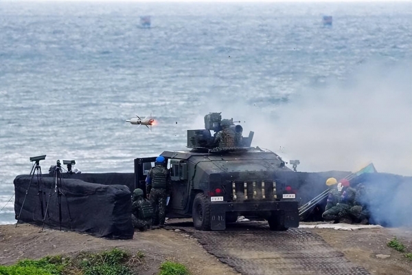 26日下午,台陆军联兵269旅出动了四辆新到货的M1167"悍马"反坦克导弹发射车,搭载M41A7"改进型目标捕获系统"(ITAS),在岸边的预构阵地上,对近岸海面上设置的固定目标试射陶-2A反坦克导弹实弹。