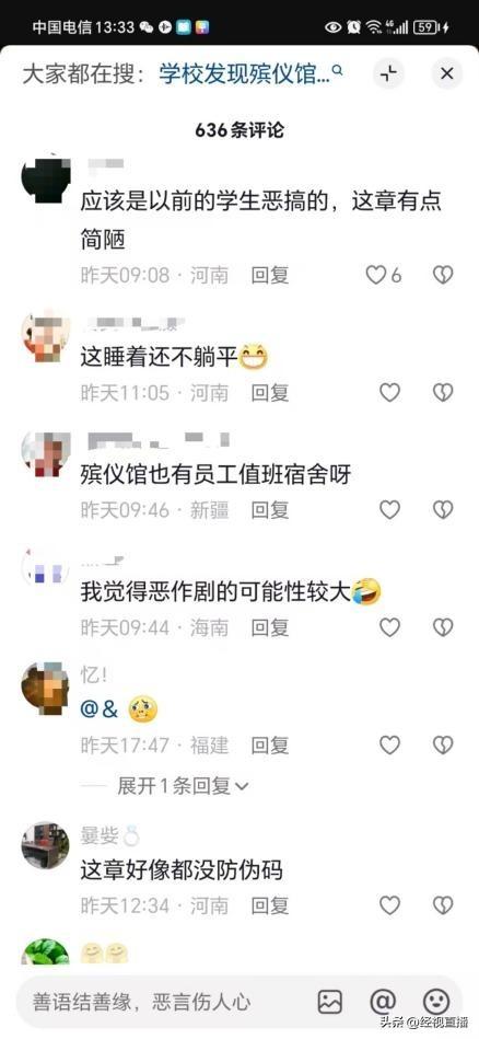 视频发布后,引起了很多网友热议,有网友表示,这床有点儿怕。也有网友分析,会不会是上届学生恶作剧?还有网友表示,这可能是假的,主要是博主为了流量。