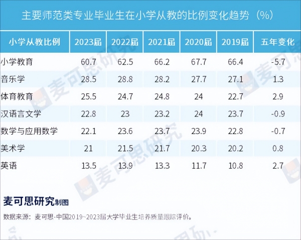 师范类院校和师范类专业在培养幼教和中小学教师方面发挥着举足轻重的作用。具体到专业来看,根据麦可思最新发布的《2024年中国本科生就业报告》显示,小学教育专业是小学从教人员的最重要来源。