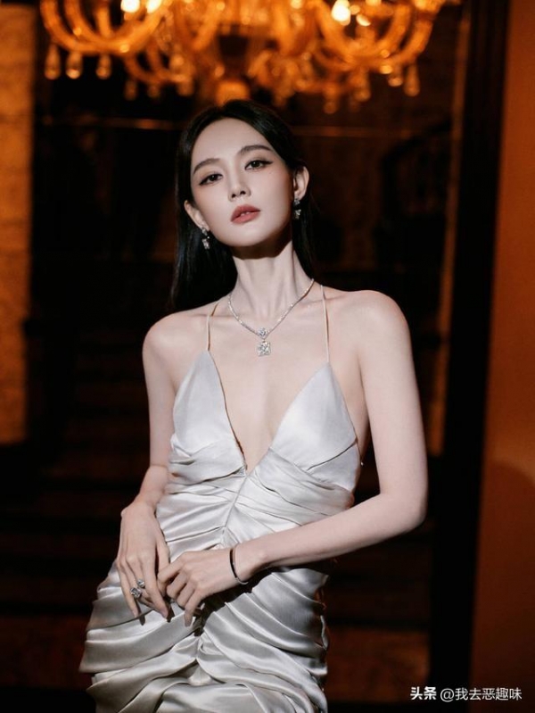 一袭银色深V丝绸吊带裙,勾勒出李一桐玲珑有致的身材曲线,深V领口大胆地展现着女性的妩媚,修身的剪裁将她白皙的肌肤衬托得更加耀眼,仿佛月光倾泻而下,凝聚在她身上,让她成为了全场的焦点