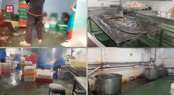 记者暗访发现,成都明扬食品与重庆曾巧食品的车间简直是细菌的温床,地面淤积污水,鸡爪被工人踩踏后直接扔回加工筐,腥臭味令人窒息。为了让这些腐败变质的原料"重获新生",国家明令禁止使用的双氧水成了"美容圣品"。工人们坦言,这种强氧化剂能让鸡爪瞬间白净诱人,他们自己却根本不敢吃。更令人心惊的是,上游药企竟通过"贴牌"方式,将工业双氧水摇身一变包装成"消毒液",源源不断输送到食品加工厂,形成了一条完整的黑色产业链。