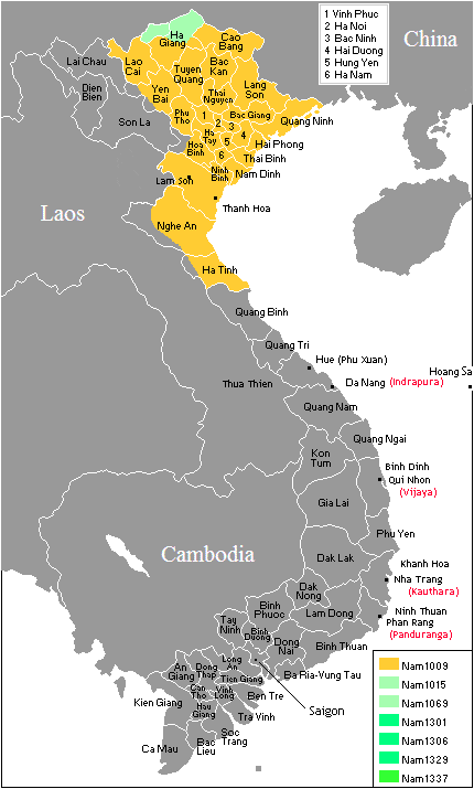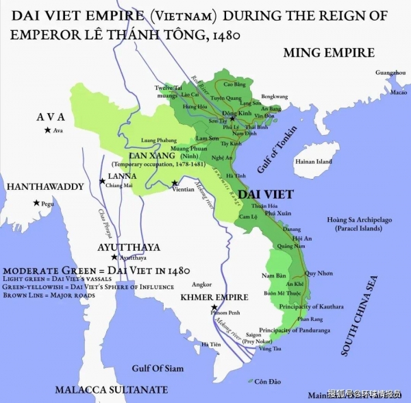 15世纪中叶,越南已夺占了占城半数以上的领土,越南疆域推进至今越南中南部。同时期越南还翻越长山山脉,短暂吞并了泰老民族建立的澜沧王国(老挝前身),一时间声震中南半岛。