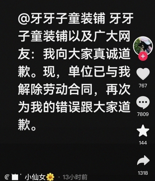 广东"牙牙子童装铺"的女店主撑不住了,发视频哭诉,播放迅速破百万,把王某的社交账号推到聚光灯下