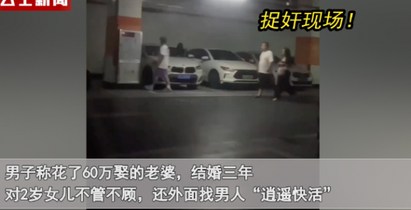 男子称花了60万娶的老婆,结婚三年对2岁女儿不管不顾,还在外面找男人"逍遥快活"。视频中男子在停车场内守株待兔,看到妻子和异性男子出现后,直接跑上前"捉奸"。妻子见被发现解释"只是和朋友看电影",丈夫不相信妻子的话,两人爆发争吵。