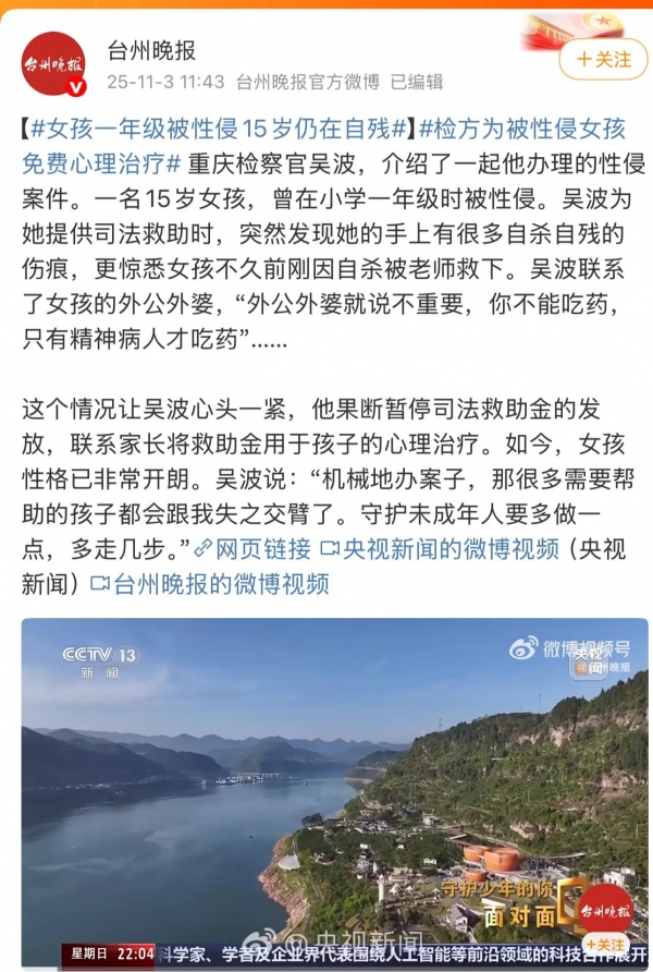 当重庆检察官吴波看到那个15岁女孩手臂上密密麻麻的自残伤痕时,他知道,这起看似"流程已结"的性侵案,远没有结束。