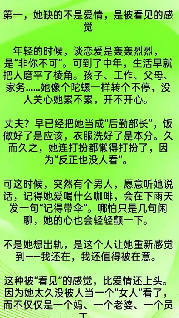 她们不是想背叛家庭,也不是贪图刺激,只是那些被忽视的情绪、被冷落的需求,总得找个出口。