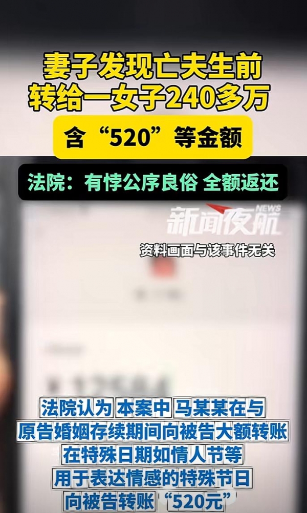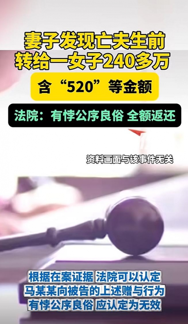 9月8日,当判决文书送达双方时,这场跨越生死的财产争夺战尘埃落定。赖某拿回的不仅是241万元,更是对婚姻忠贞的法律确认。而王某需返还的不仅是金钱,更是对公序良俗的重新审视--在情感与金钱的纠葛中,法律始终守护着婚姻的底线与财产的尊严。