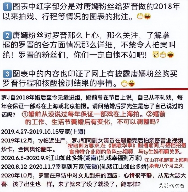 面对指责,罗晋粉丝们迅速整理了罗晋自2018年起的行程,回击唐嫣粉丝"无中生有",故意黑罗晋。