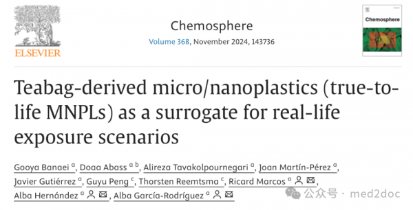 尼龙茶包:每毫升水释放约818万颗微塑料颗粒,颗粒平均大小为138.4纳米。